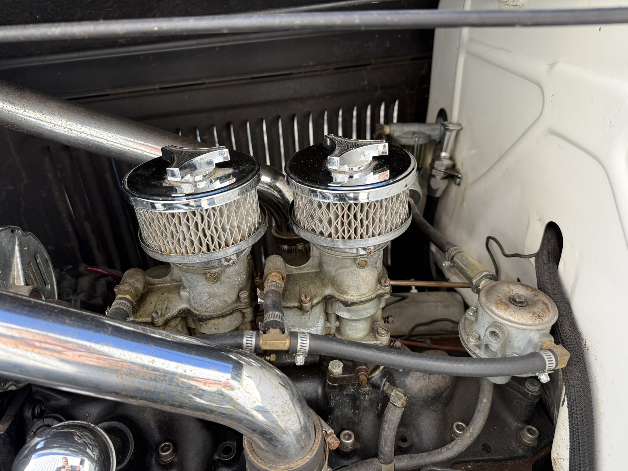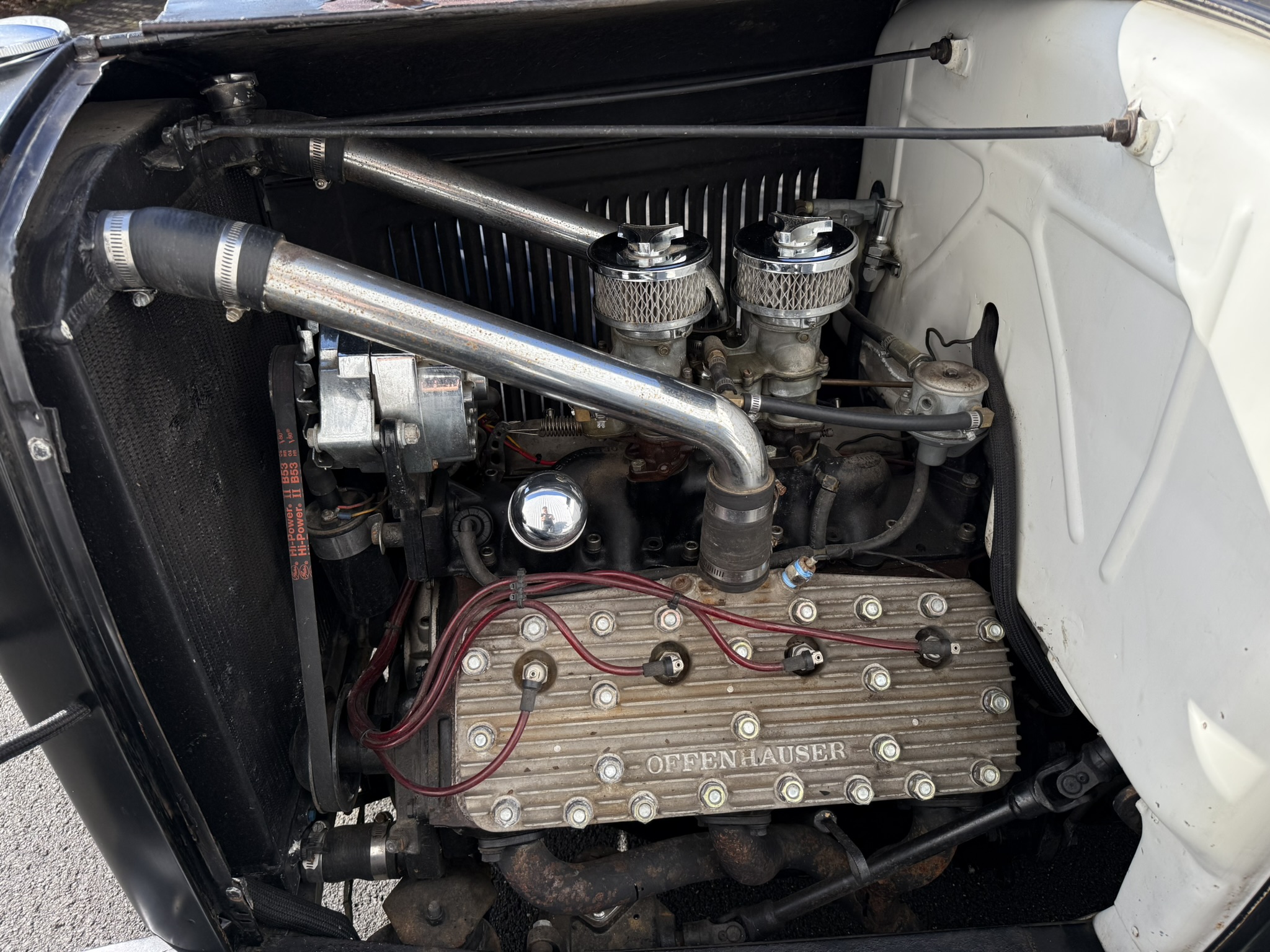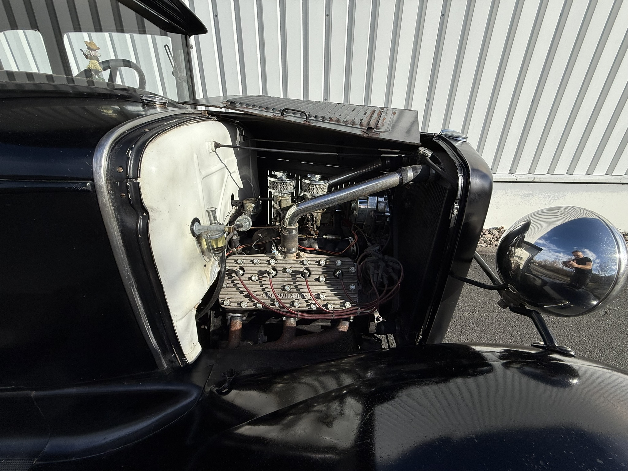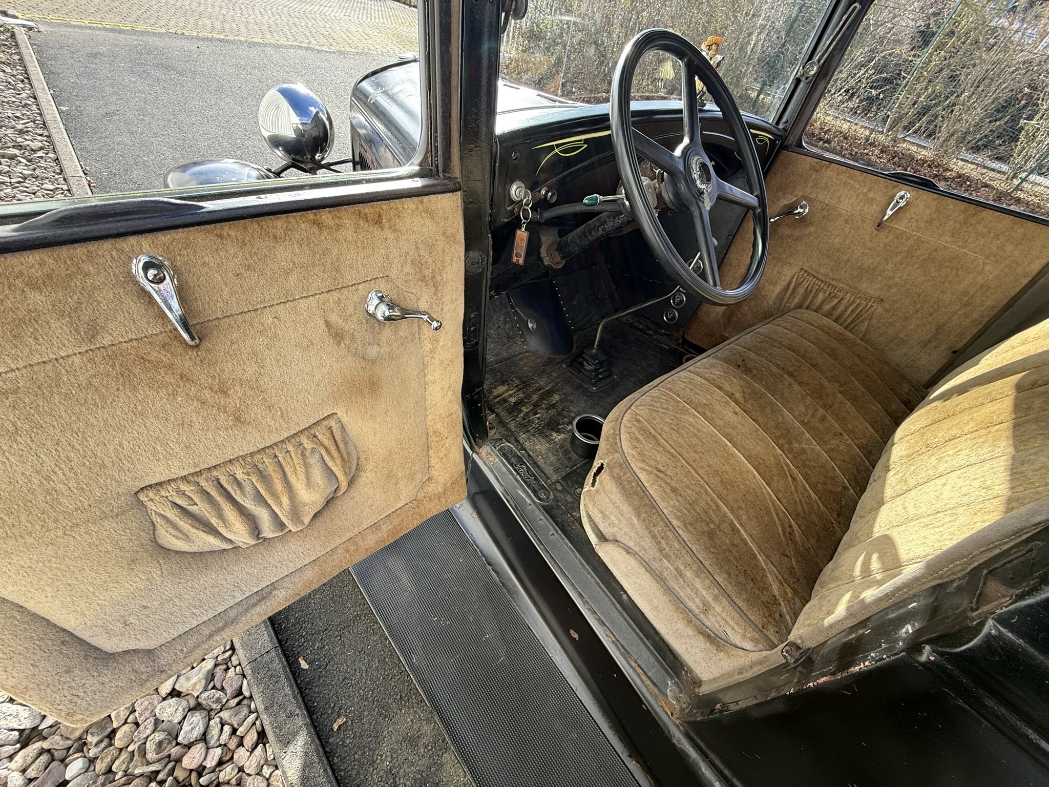 1930 Ford Model A 5 Window Coupe, original Henry Ford Steel. Traditional Hot Rod. Flathead V8 mit 2 Stromberg 97 Vergasern. Automatik ! Open drive Rear Axle. Juice brakes. Dropped Front Axle. 12 V Conversion. All the Goodies. Vintage 16 Zoll Wheels mit. Firestone Tires. Tolles Vintage Rod mit Geschichte! Alter Lack und authentische alte Innenausstattung. Ein Stueck Zeitgeschichte.Aktuell hat der Wagen US Title und ist verzollt. Motor schnorrt wie ein Bienchen ,. Wagen laeuft super.