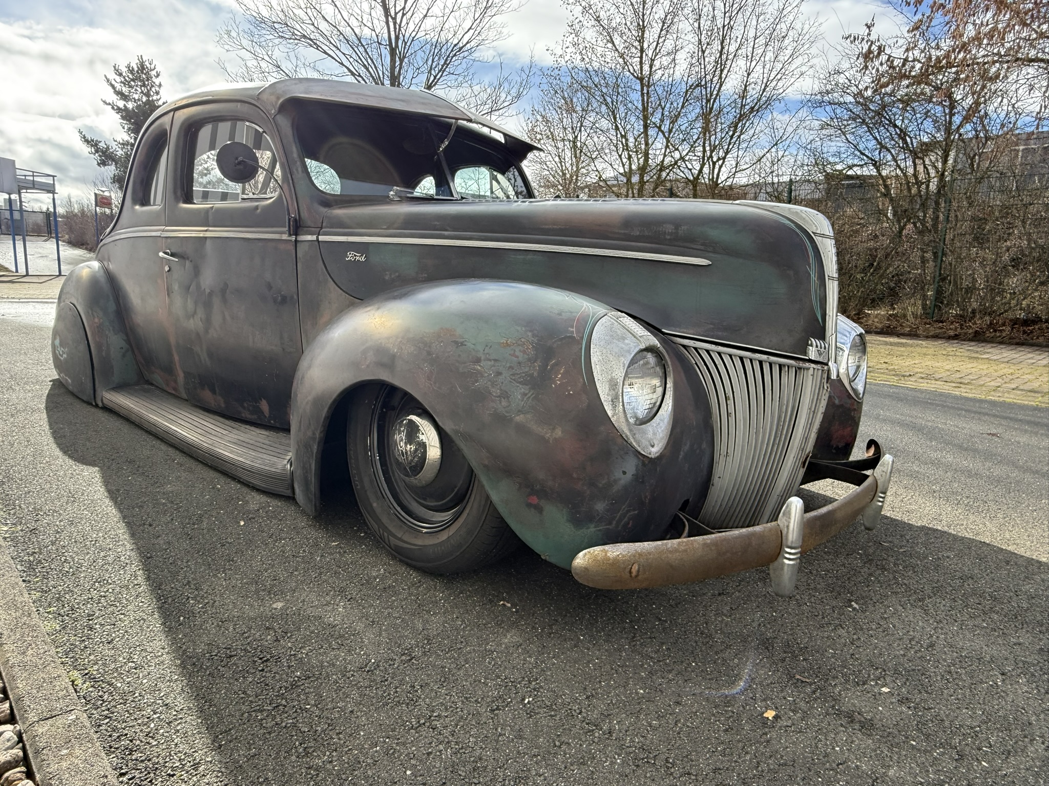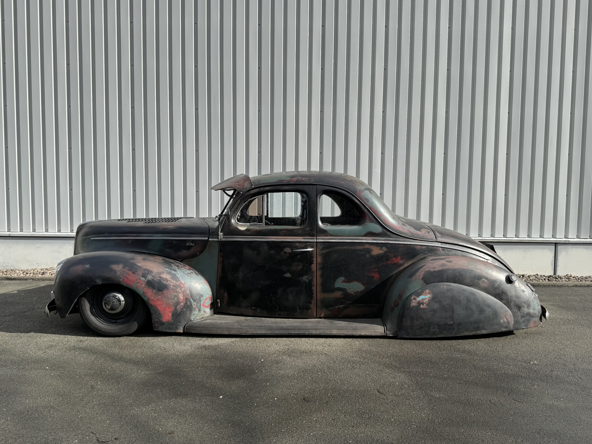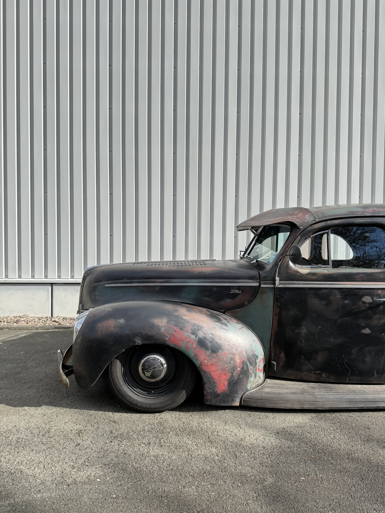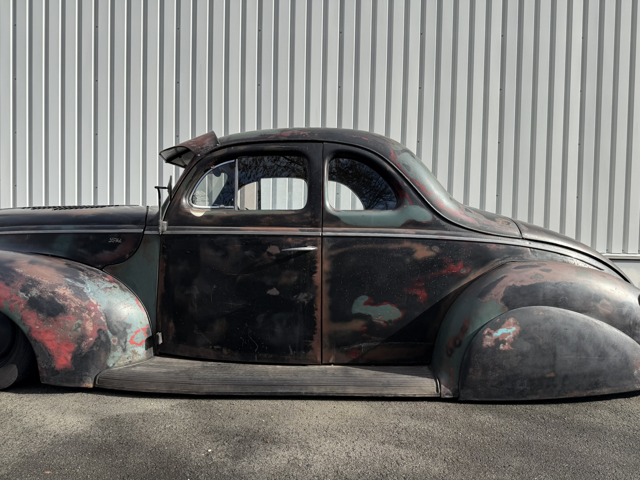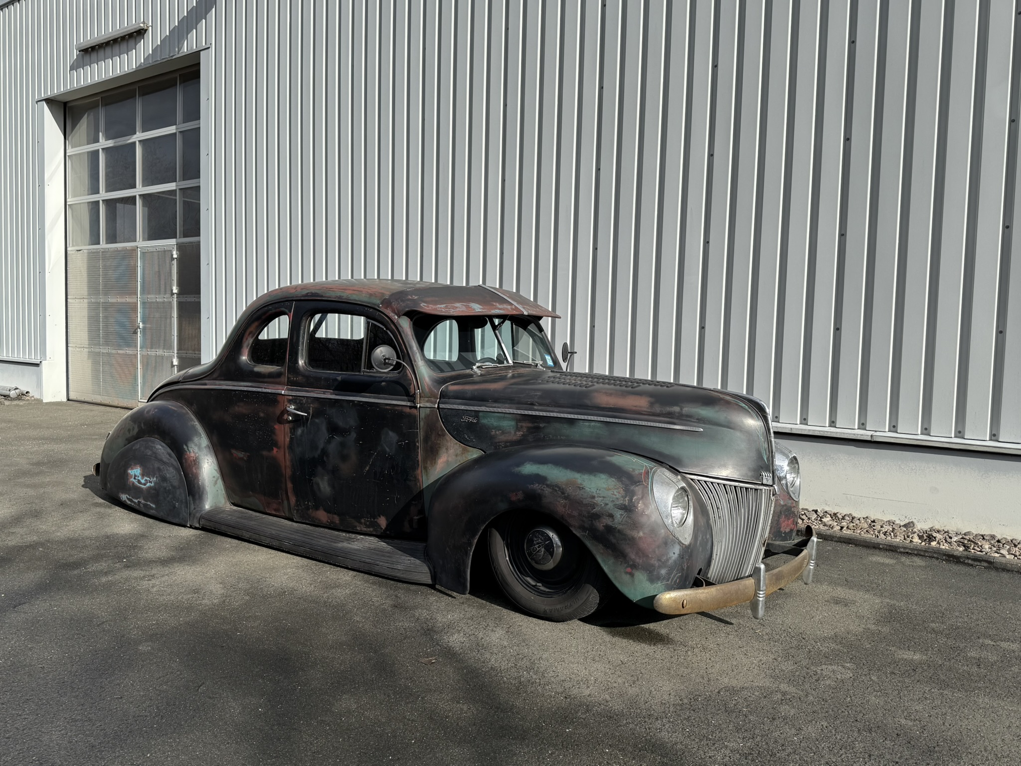 wow wow wow . tief am Boden abgelegtes 40er Ford Coupe im Patina Style mit fettem Agregat und Automatik ? Servolenkung etc. Geht das optisch noch brachialer ? wohl kaum … Wir lieben unseren neuen Ausnahmekandidaten !Â
