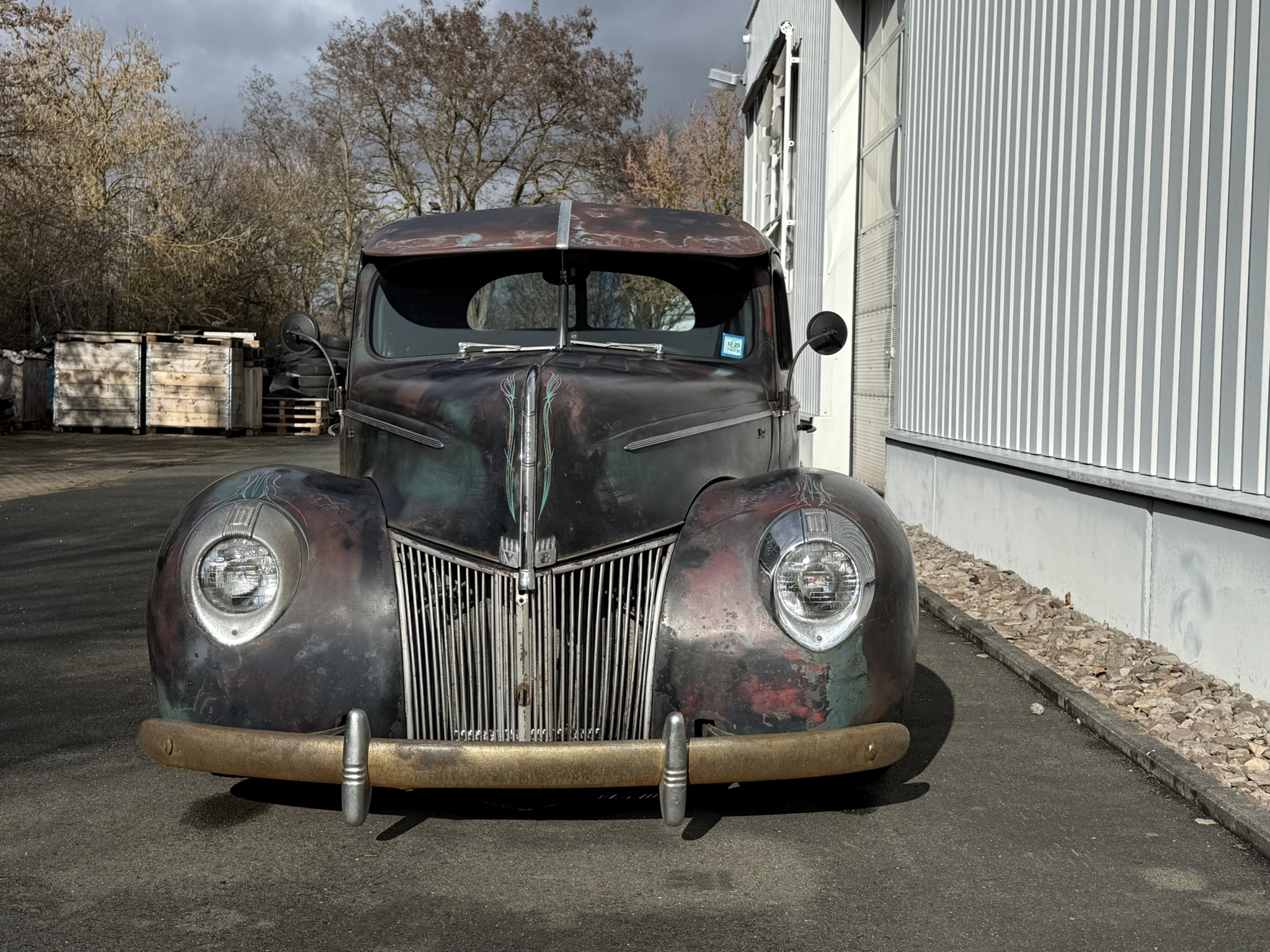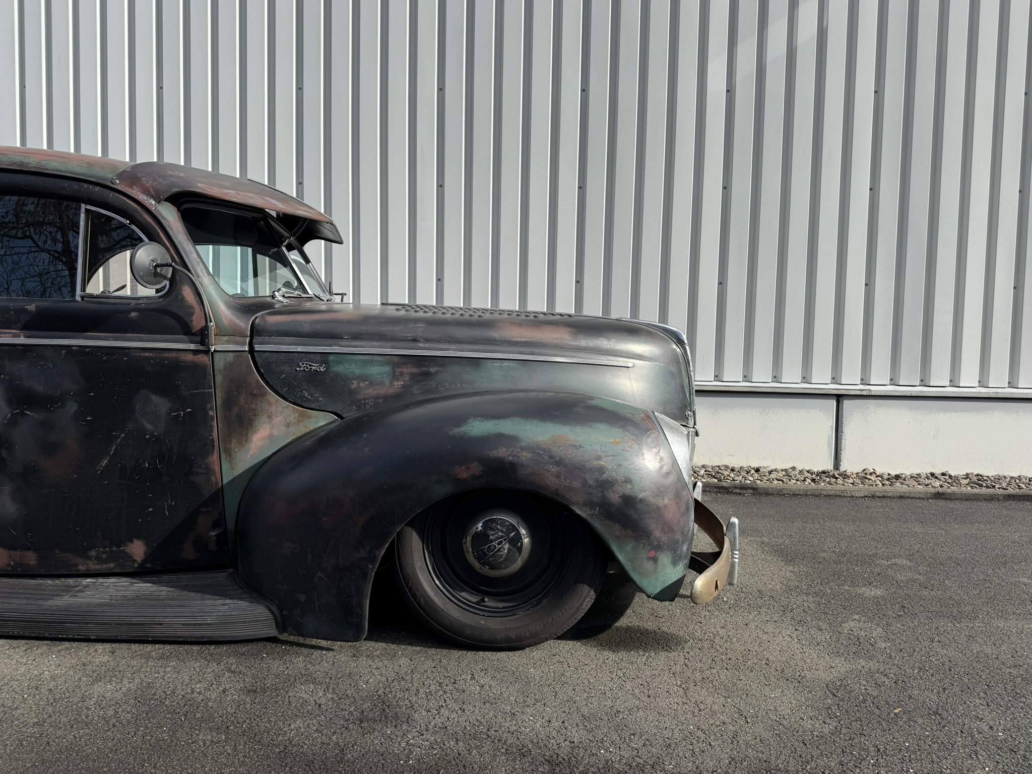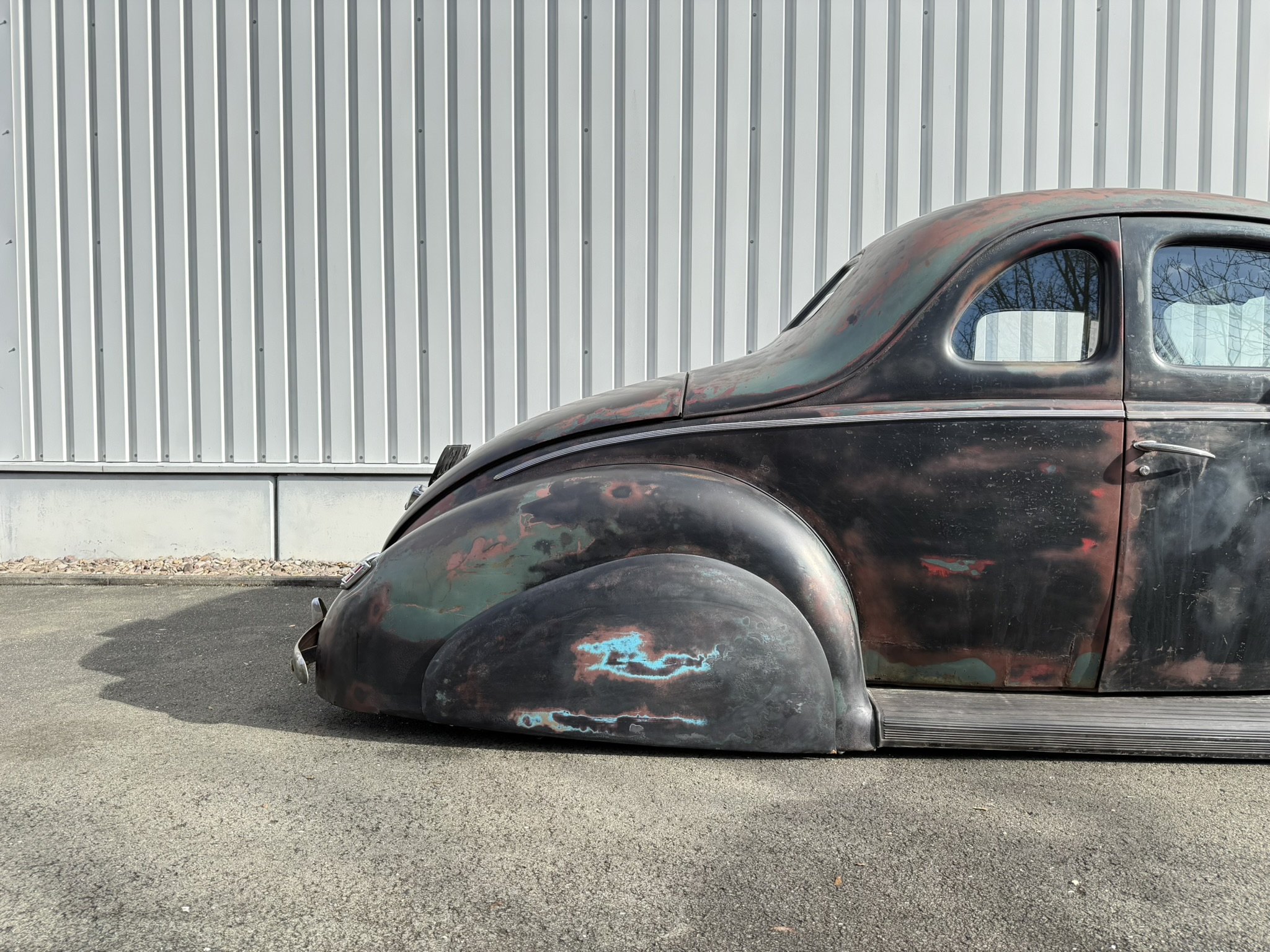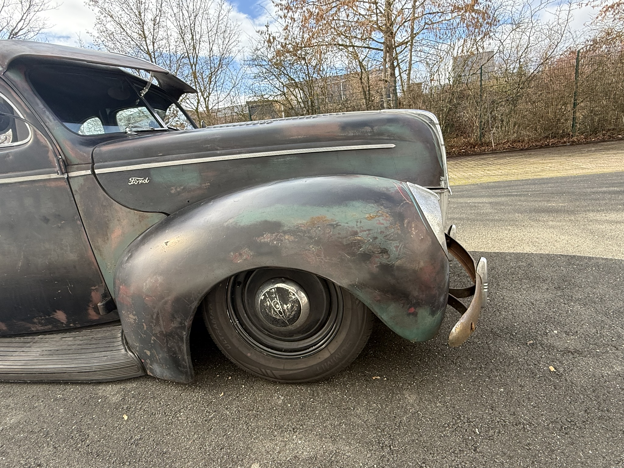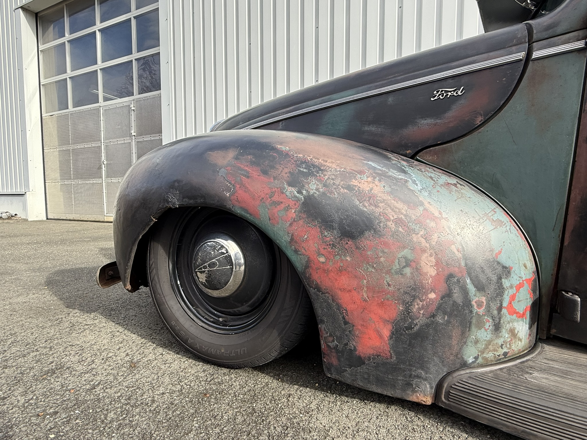 wow wow wow . tief am Boden abgelegtes 40er Ford Coupe im Patina Style mit fettem Agregat und Automatik ? Servolenkung etc. Geht das optisch noch brachialer ? wohl kaum … Wir lieben unseren neuen Ausnahmekandidaten !Â