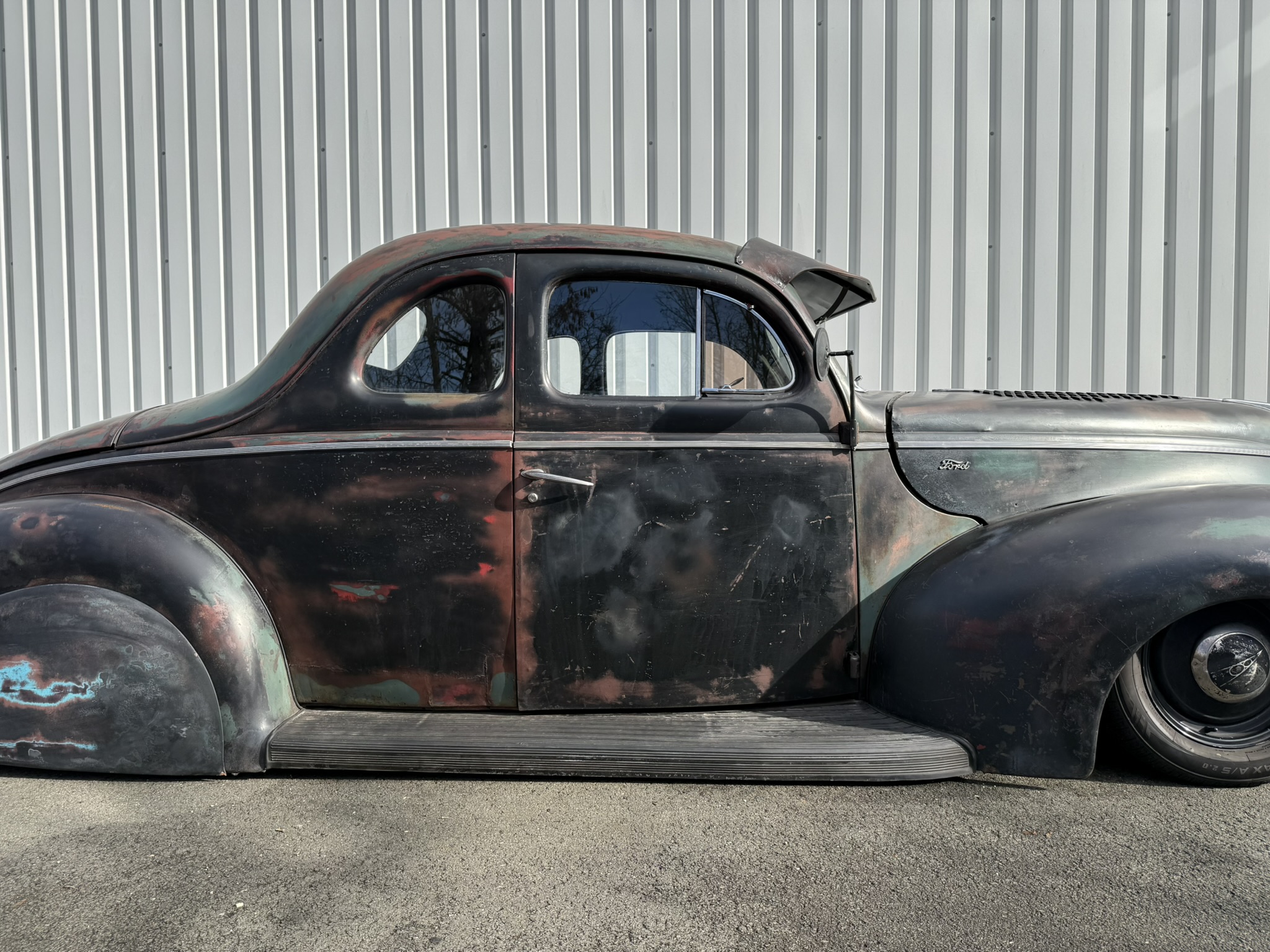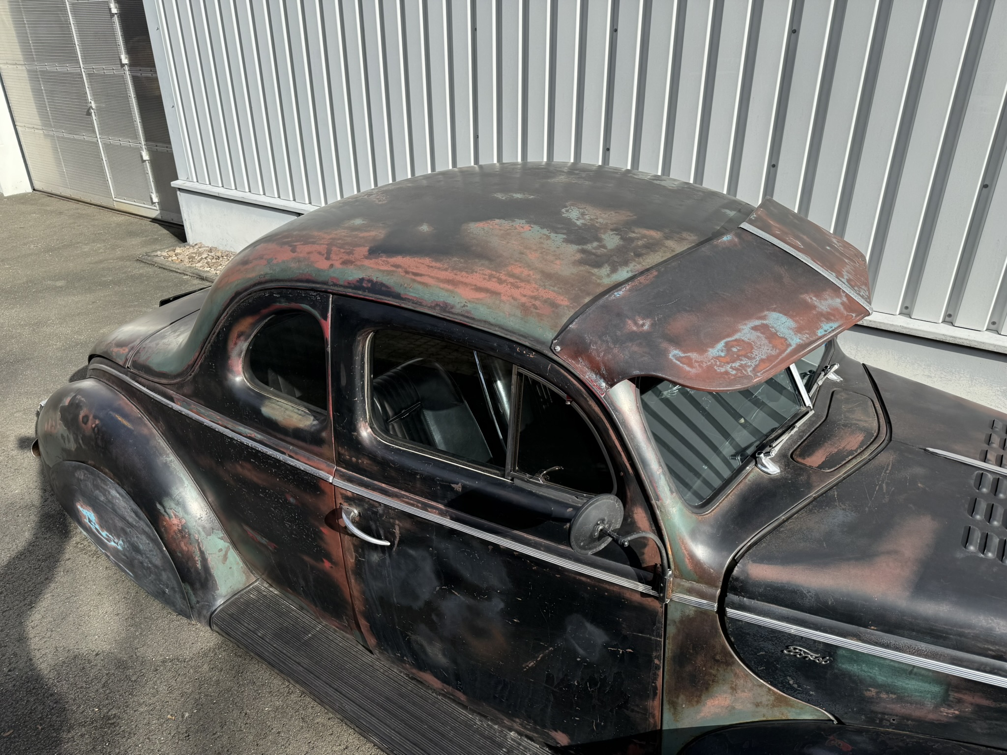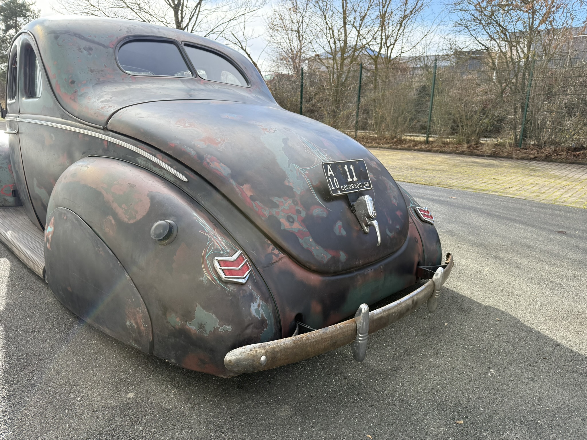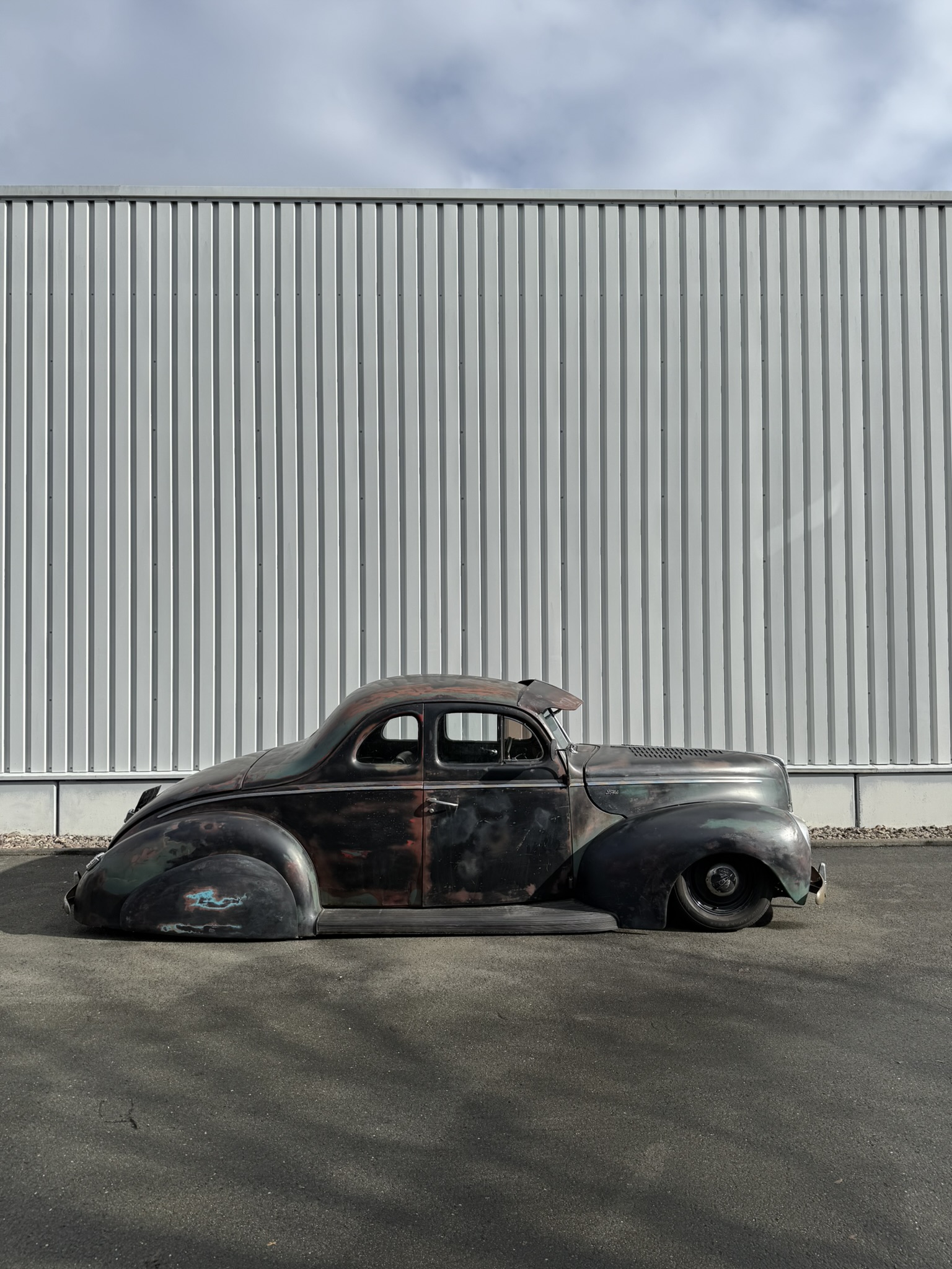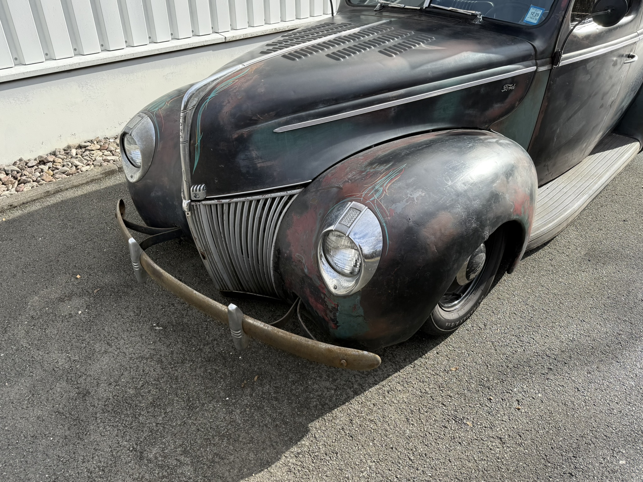 wow wow wow . tief am Boden abgelegtes 40er Ford Coupe im Patina Style mit fettem Agregat und Automatik ? Servolenkung etc. Geht das optisch noch brachialer ? wohl kaum … Wir lieben unseren neuen Ausnahmekandidaten !Â