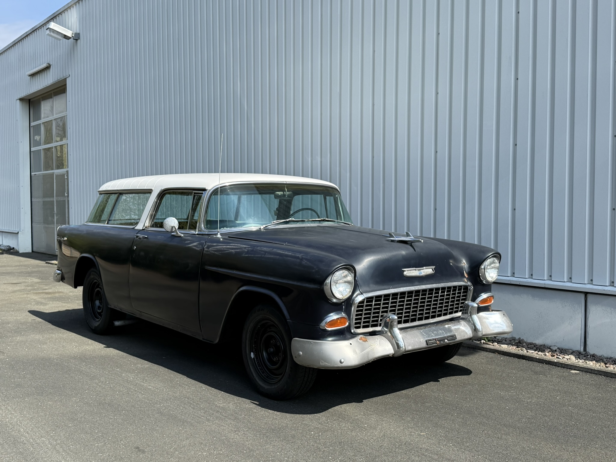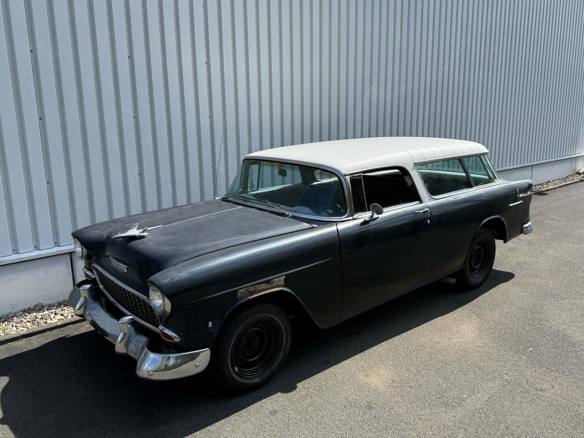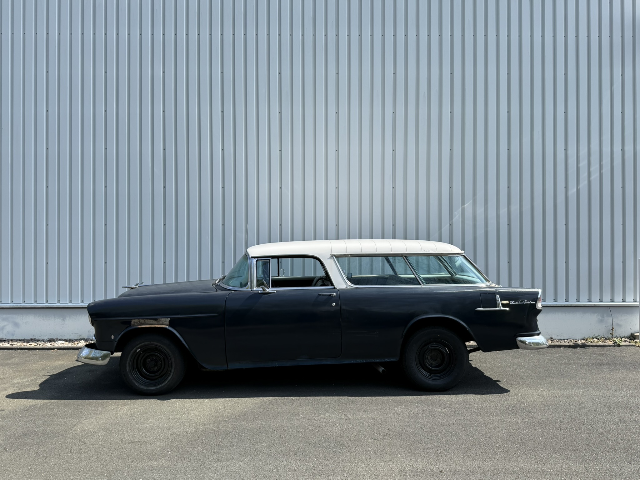 Wenn man bedenkt wie selten diese Fahrzeuge geworden sind kann man einfach son froh sein ueberhaupt einen sein eigen zu nennen. Chevy brachte 1955 einen 2 tuerigen Kombi heraus, auf der Plattform des Bel Air, wurde aber Nomad genannt. Er hat das typische schraege Heck und 2 nur Tueren. Er war einer der ersten Sport Kombis. Ein Meilenstein. Es wurden lediglich 6103 Exemplare gebaut.