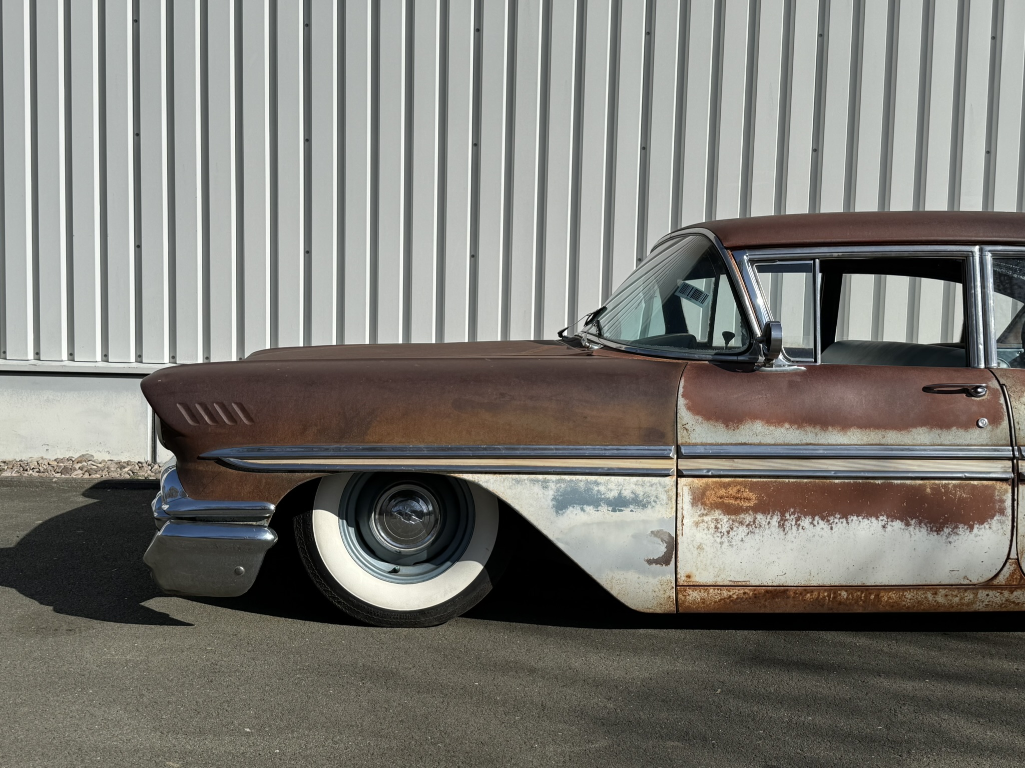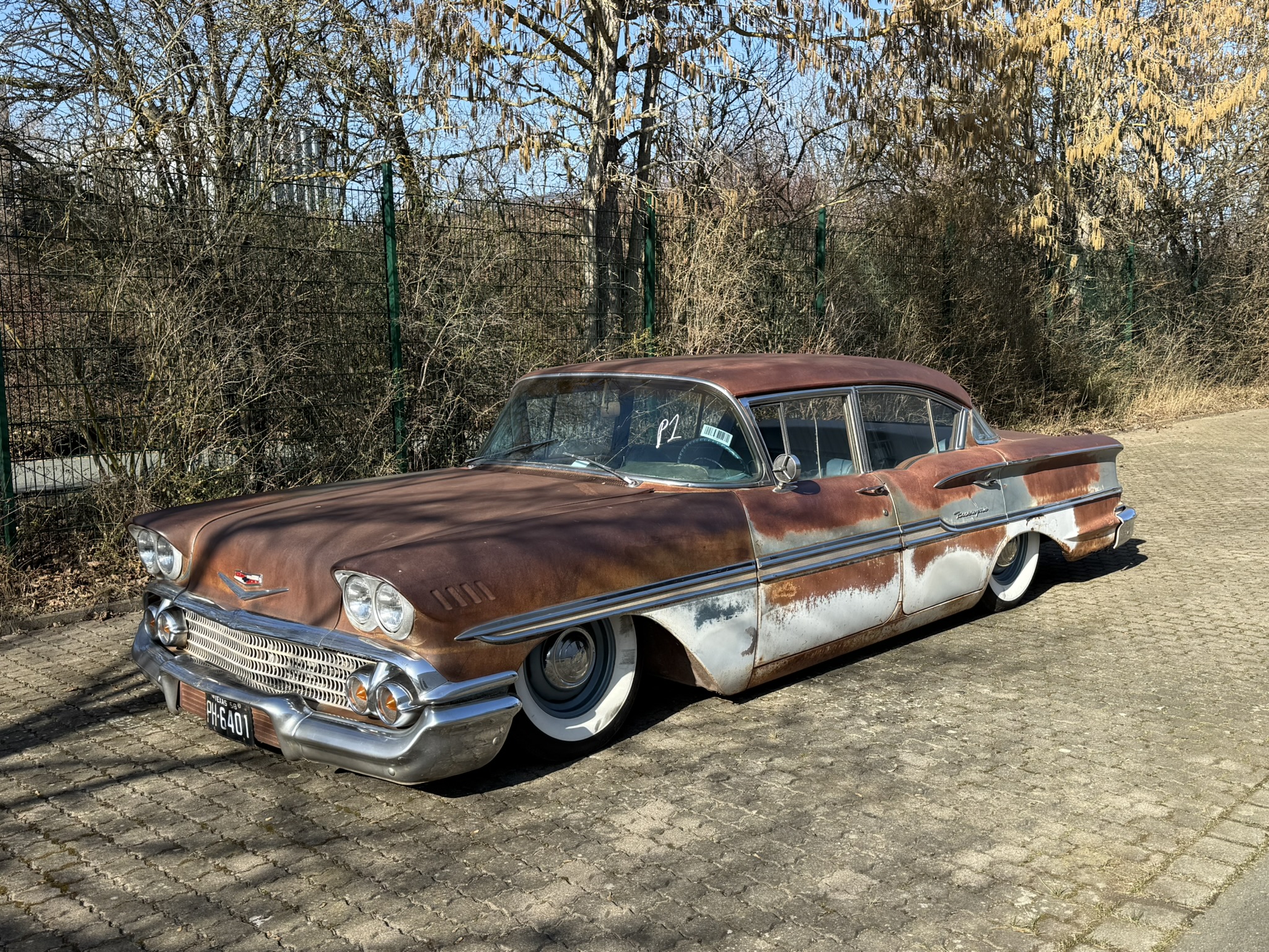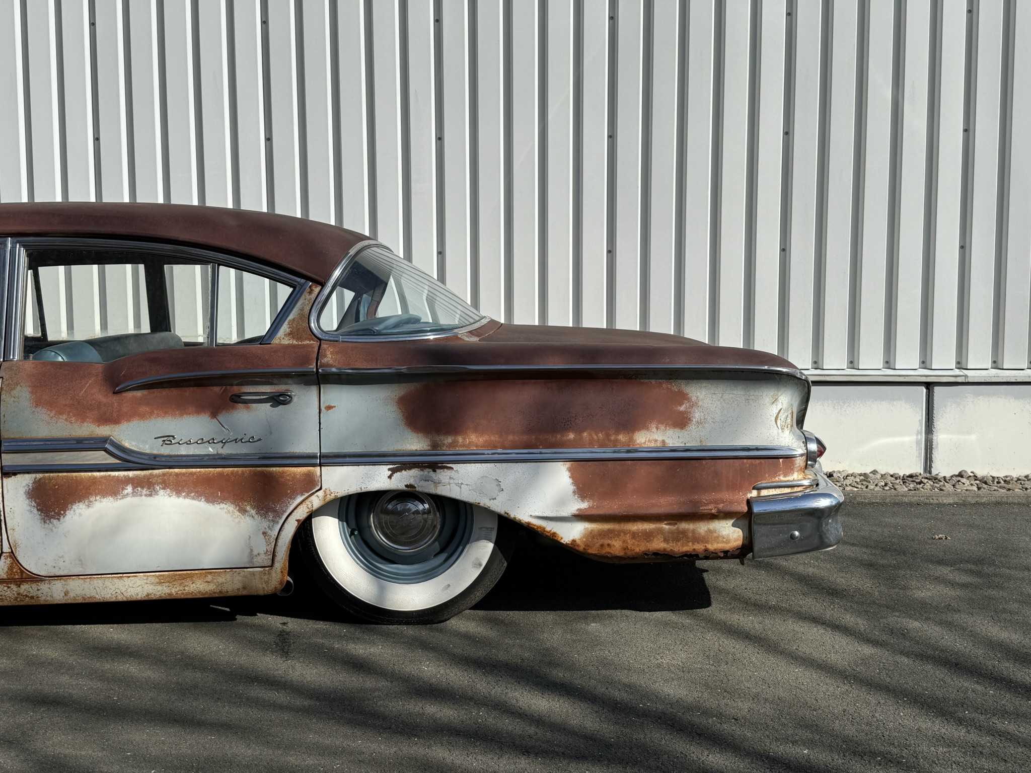 Frisch eingetroffen ! Was fuer ein wundervolles Piece of Americana! Stay tuned! Der Wagen ist gestern bei uns eingetroffen. sweet Patina! Originaler 283V8 2 speed Powerglide. On Air. .Motor schnorrt wie ein Bienchen. 4 x Trommelbremse. älteres Airride System. Der Wagen wurde zum Cruisen benutzt und auf Shows gezeigt. Alles Original bis auf das Airride.. Die Böden wurden natürlich schonmal ersetzt, genau wie der Kofferraumboden. Der Wagen wurde gleich gechanneled sodass ihr den Biscayne bis auf den Boden ablegen könnt, Yes 🙂 Next step for us wäre der Innenraum. Dieser ist original blau. Könnte in Absprache mit dem Käufer auch noch in einen anderen Farbton ( braun oder schwarz etc.) geändert werden und ist nicht im aktuelle Mitnahmepreis enthalten.