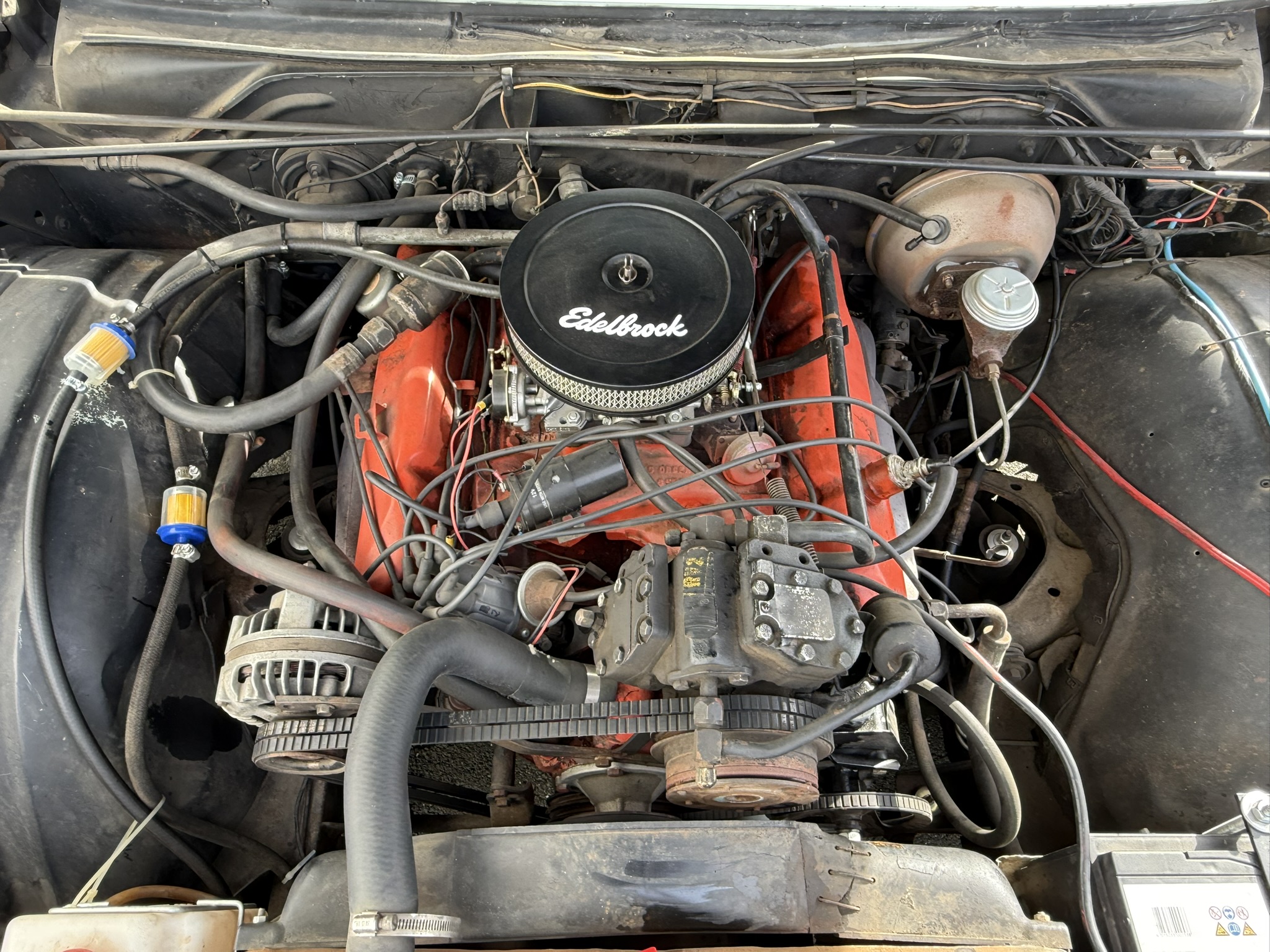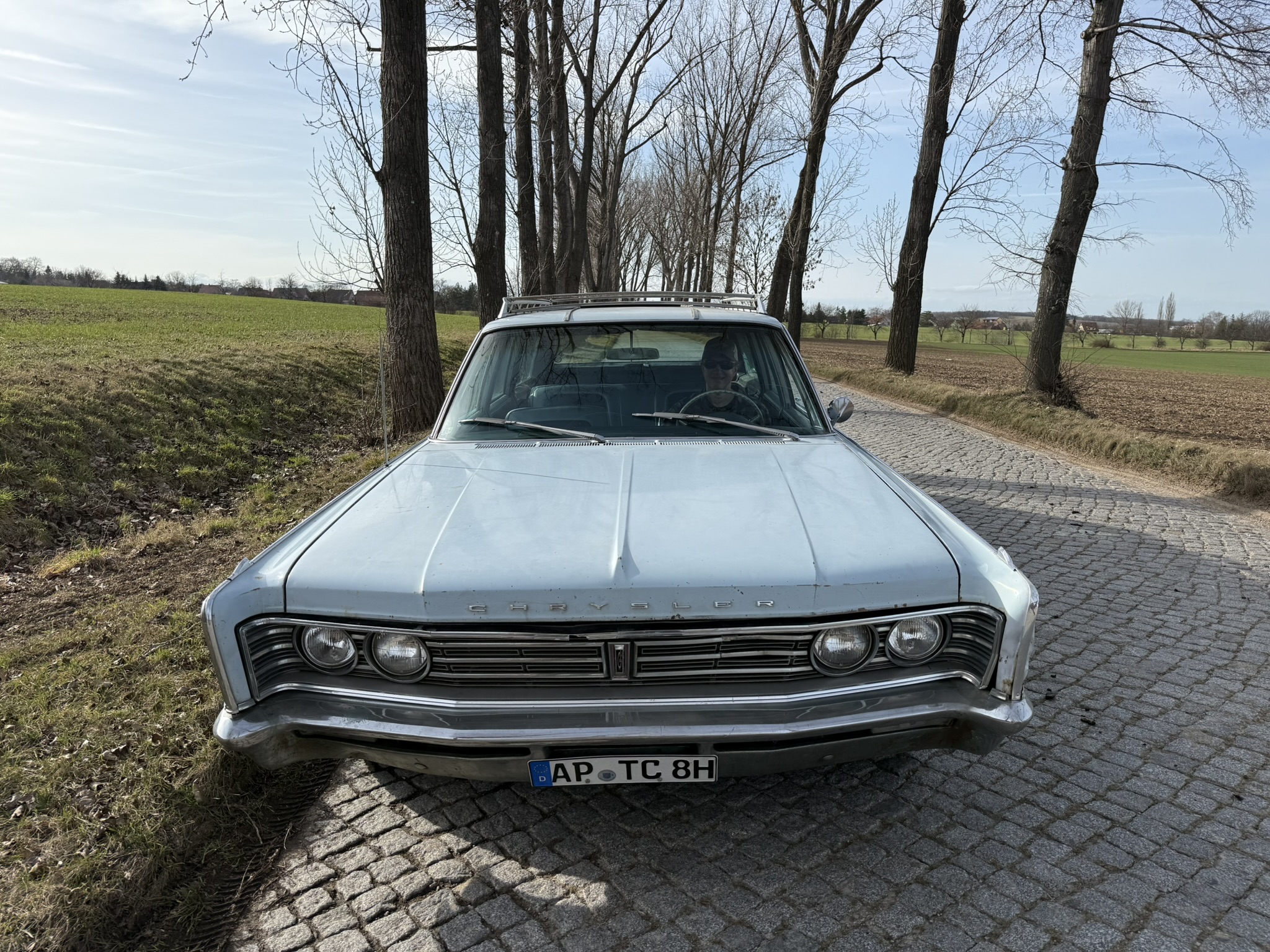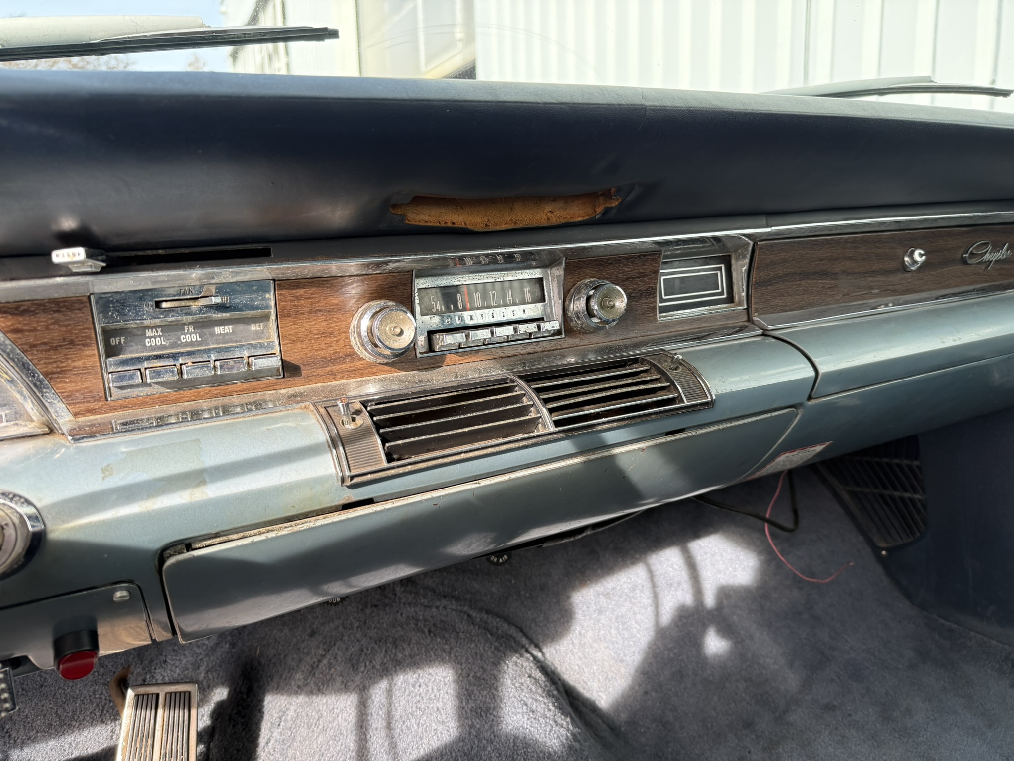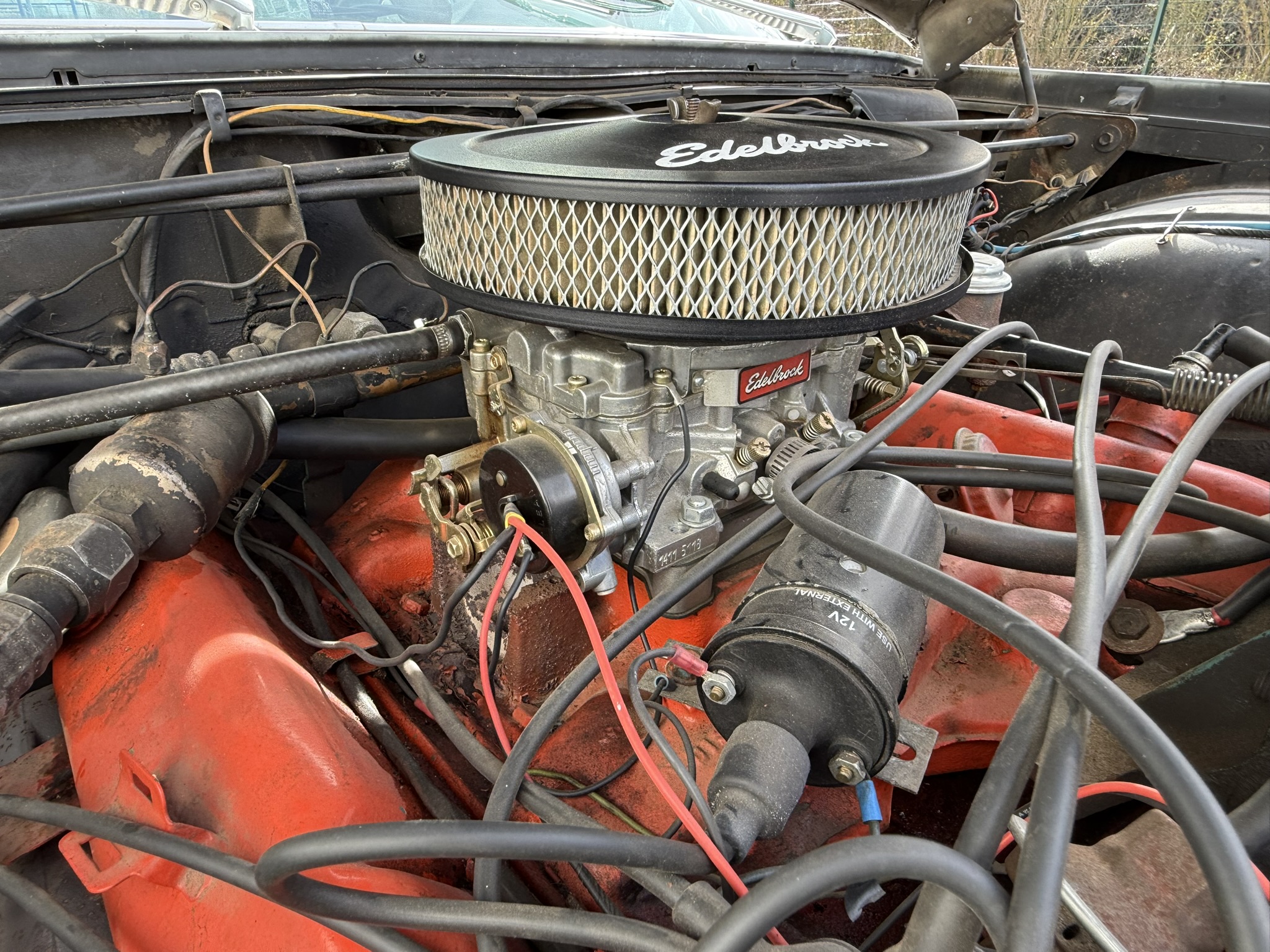 Der Chrysler wurde 10 Jahre von einem Freund von mir gefahren und ist mir gut bekannt… 7.2L Hubraum, ca 230PS. Elektronische Zündung (Pertronix). Der Wagen stammt ursprünglich aus Kalifornien, und das sieht man auch!