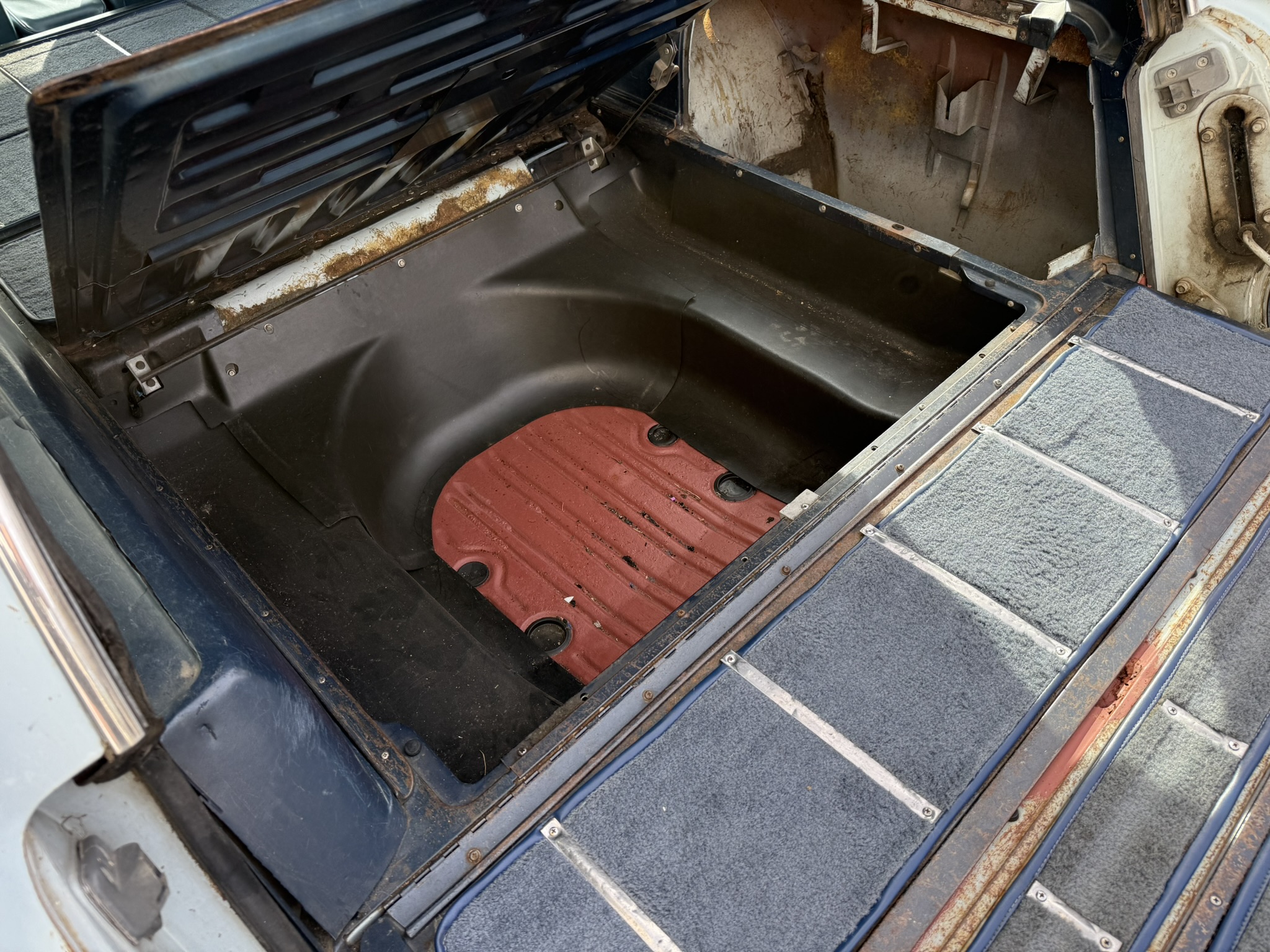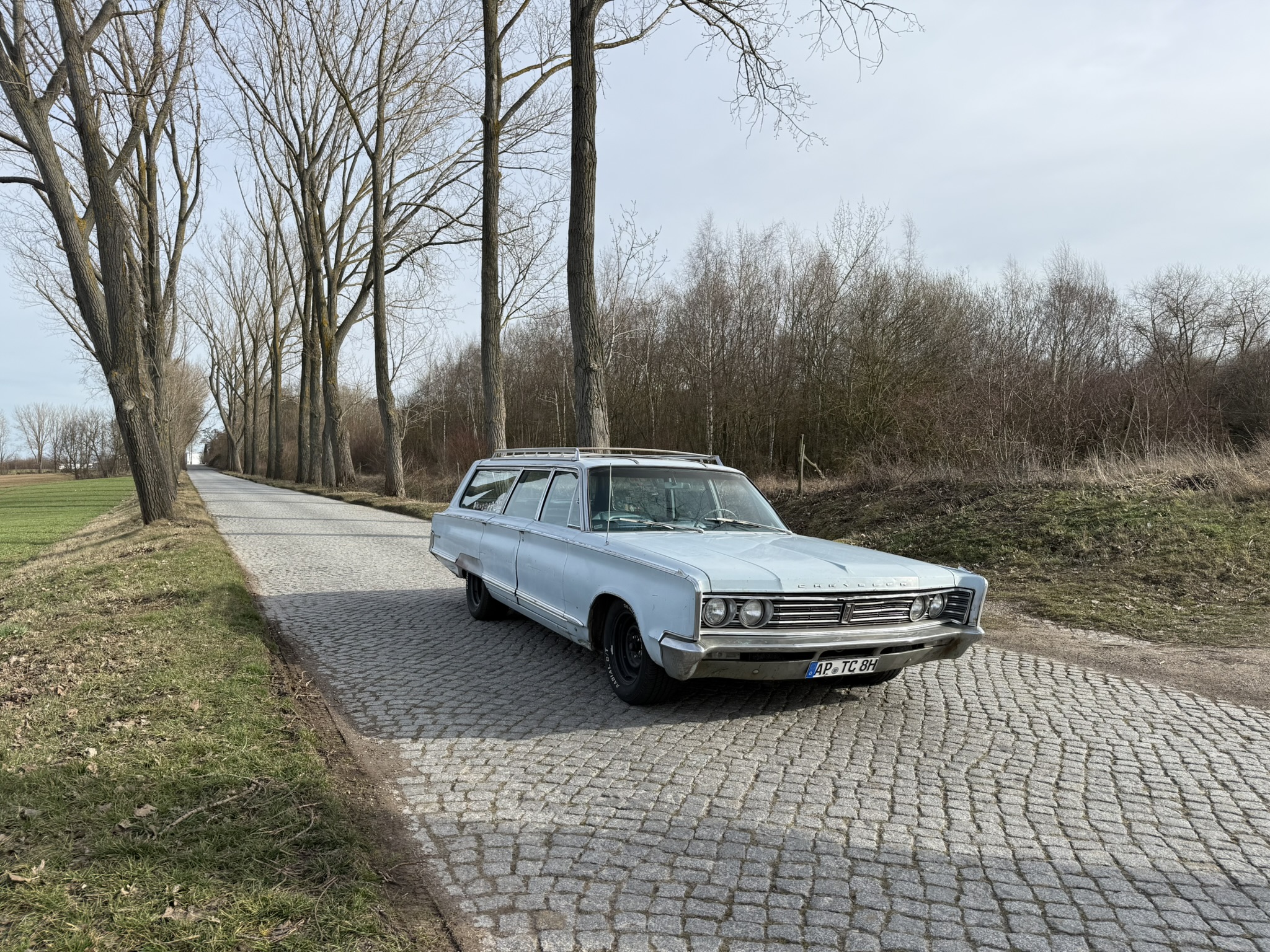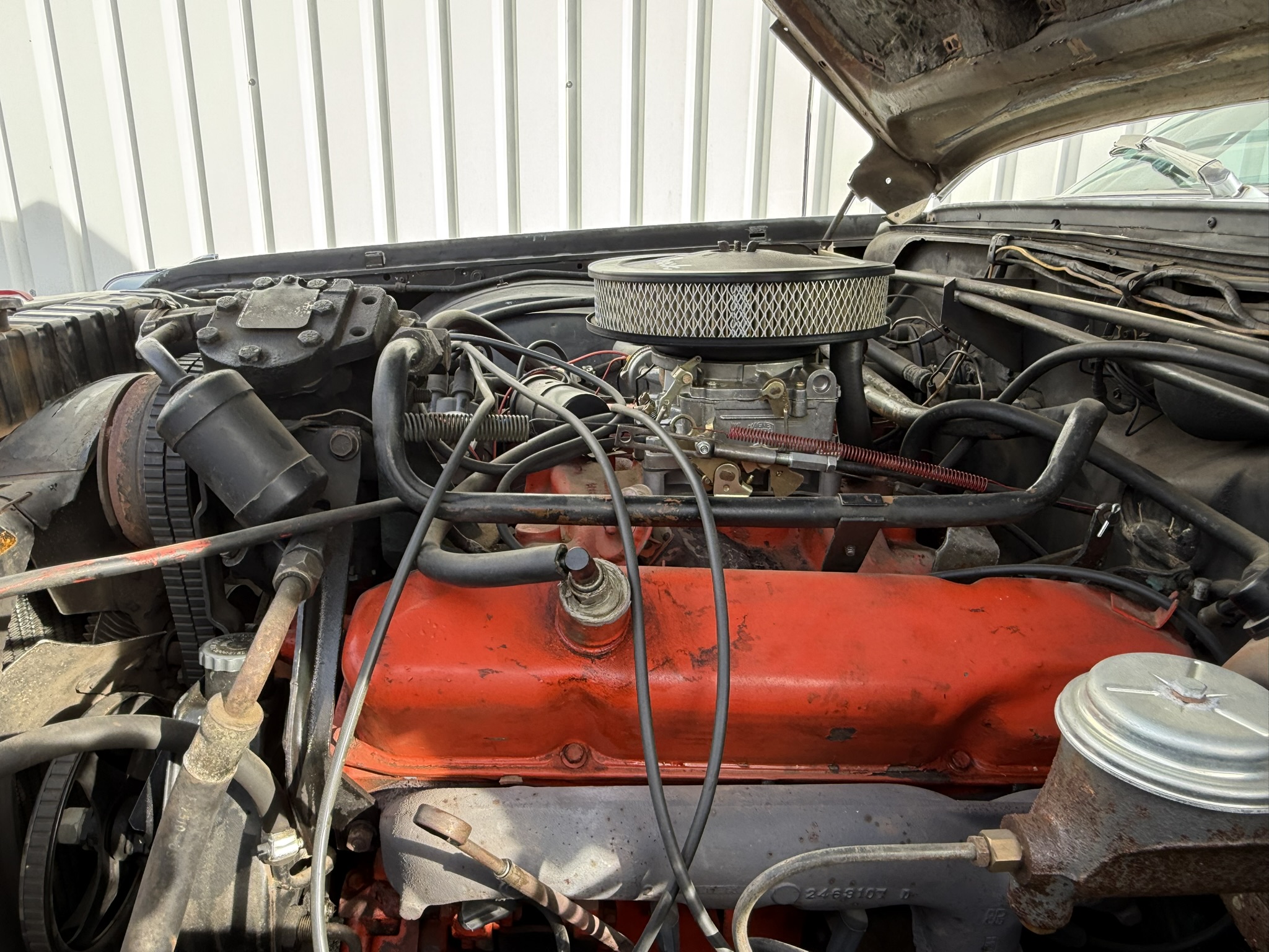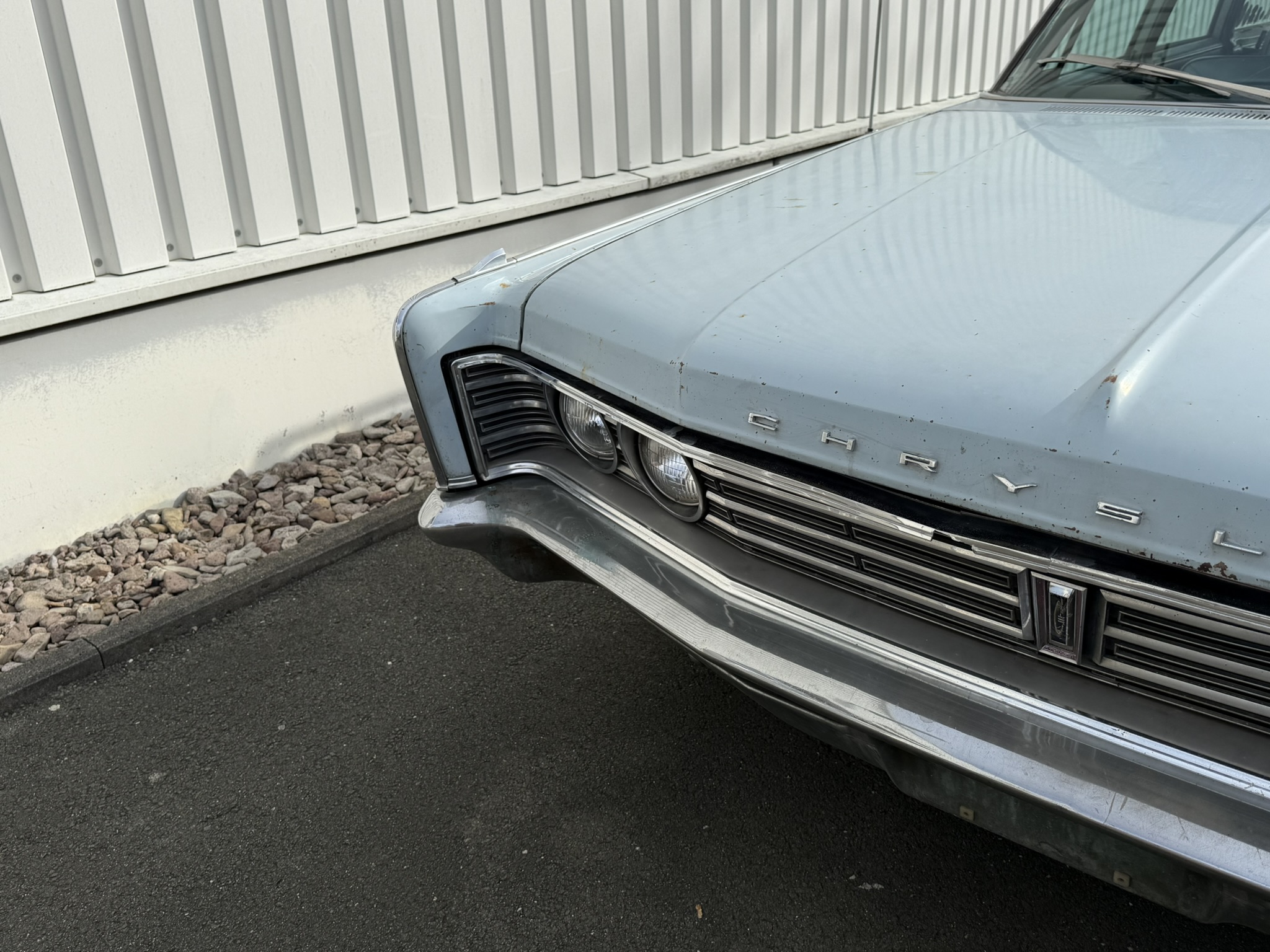 Der Chrysler wurde 10 Jahre von einem Freund von mir gefahren und ist mir gut bekannt… 7.2L Hubraum, ca 230PS. Elektronische Zündung (Pertronix). Der Wagen stammt ursprünglich aus Kalifornien, und das sieht man auch!