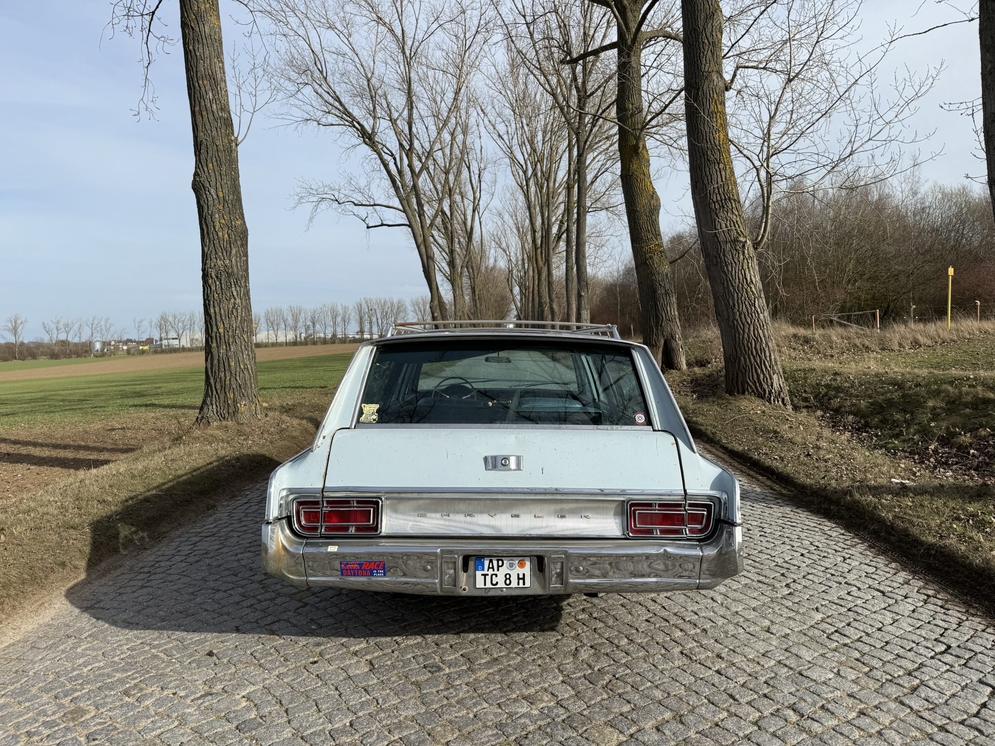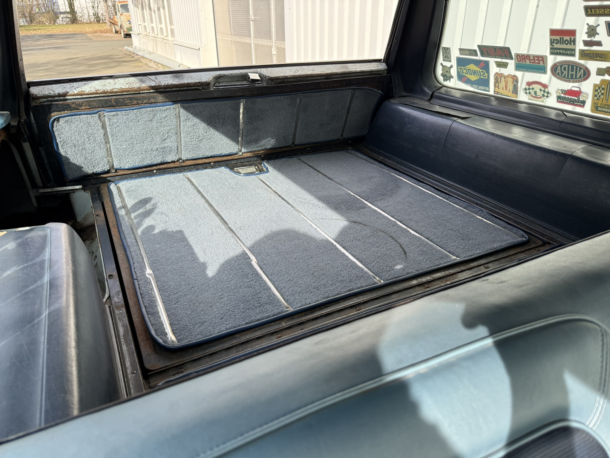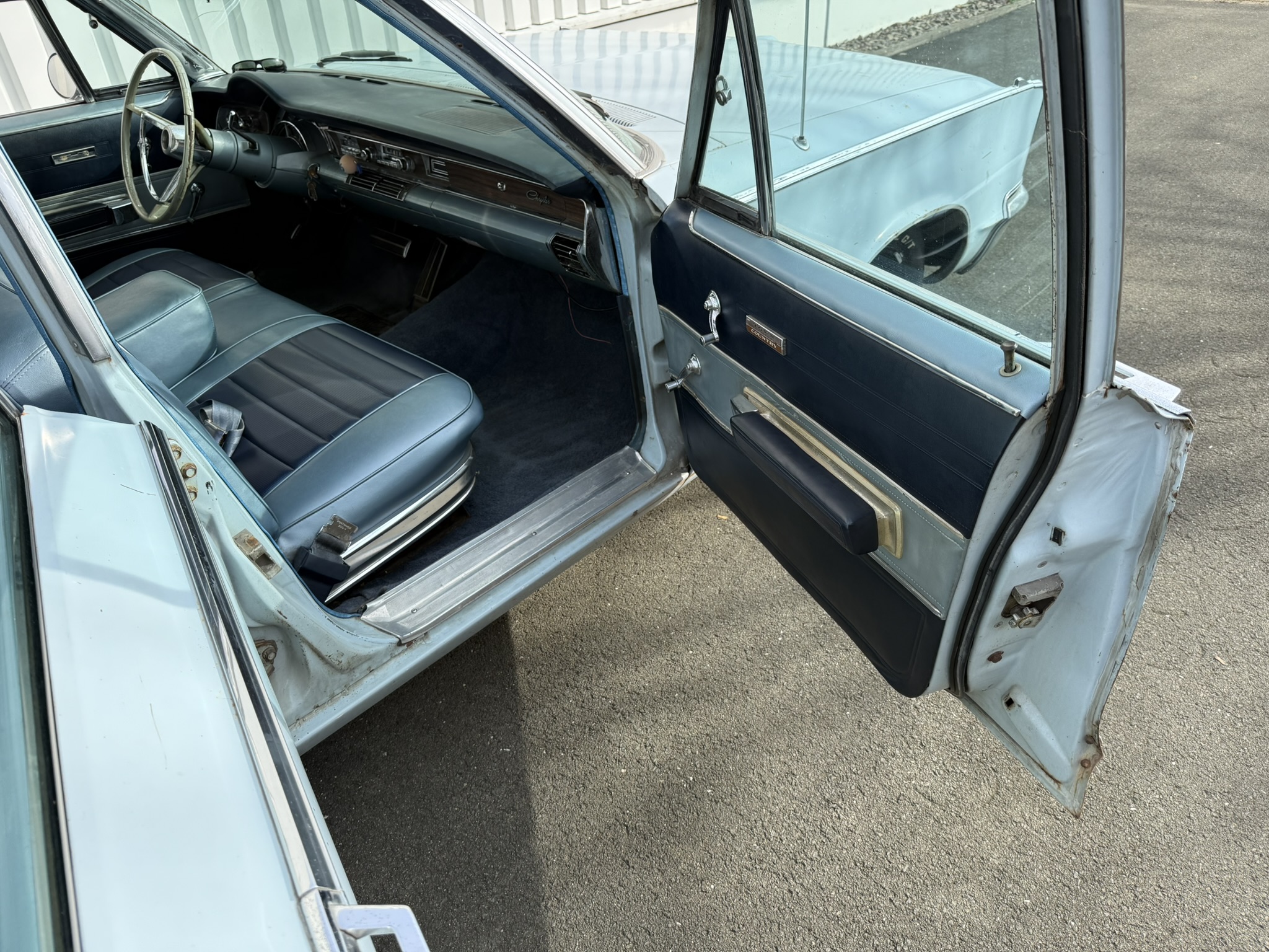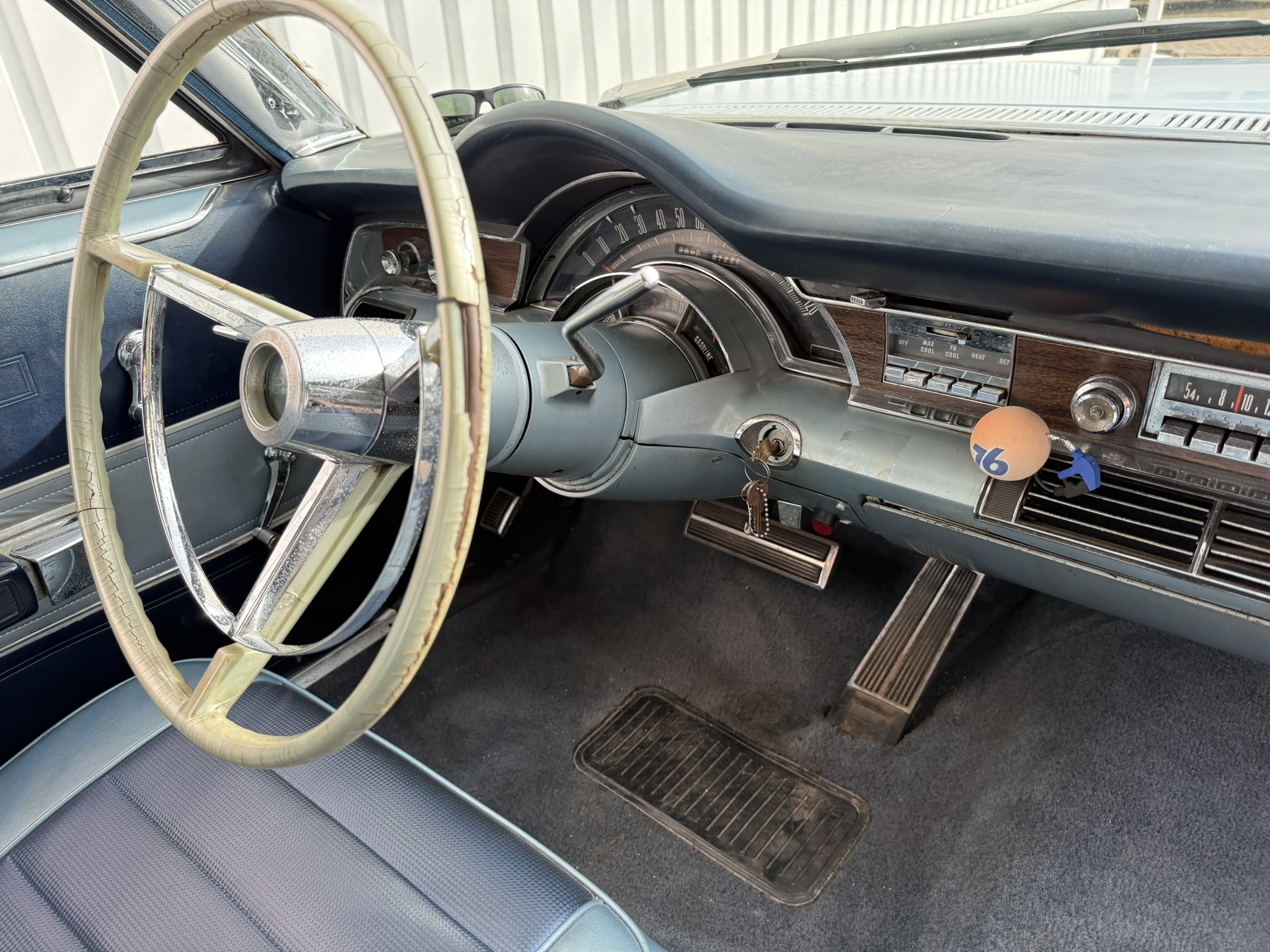 Der Chrysler wurde 10 Jahre von einem Freund von mir gefahren und ist mir gut bekannt… 7.2L Hubraum, ca 230PS. Elektronische Zündung (Pertronix). Der Wagen stammt ursprünglich aus Kalifornien, und das sieht man auch!
