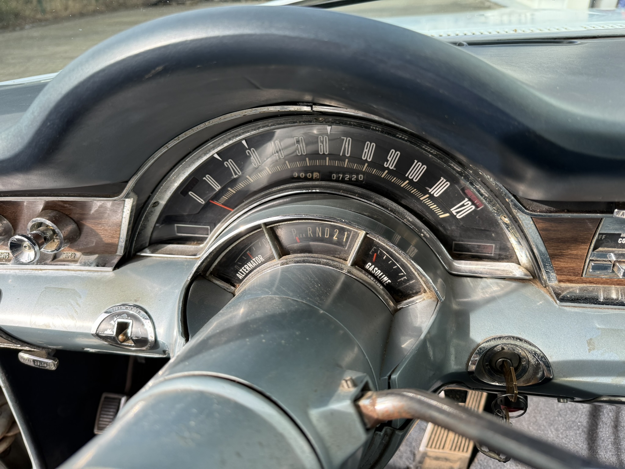 Servolenkung, Power Brakes, alles was man braucht. Das Cockpit hat ein Mega Design. Reifen und Felgen wurden erneuert (7×15 & 8×15 Steelies mit Cooper Cobra Tires), der Wagen ist dezent tiefer – so wie es sein muss 🙂