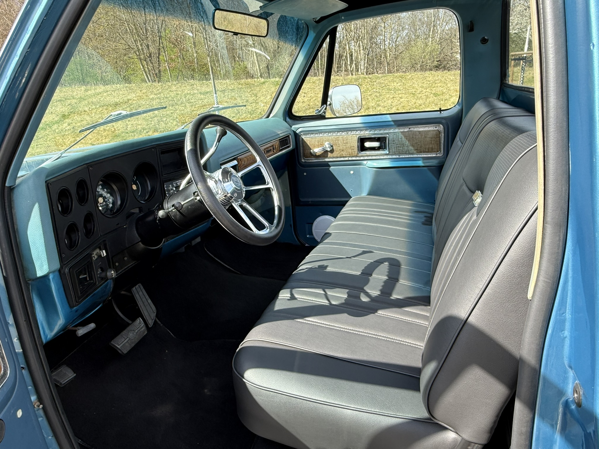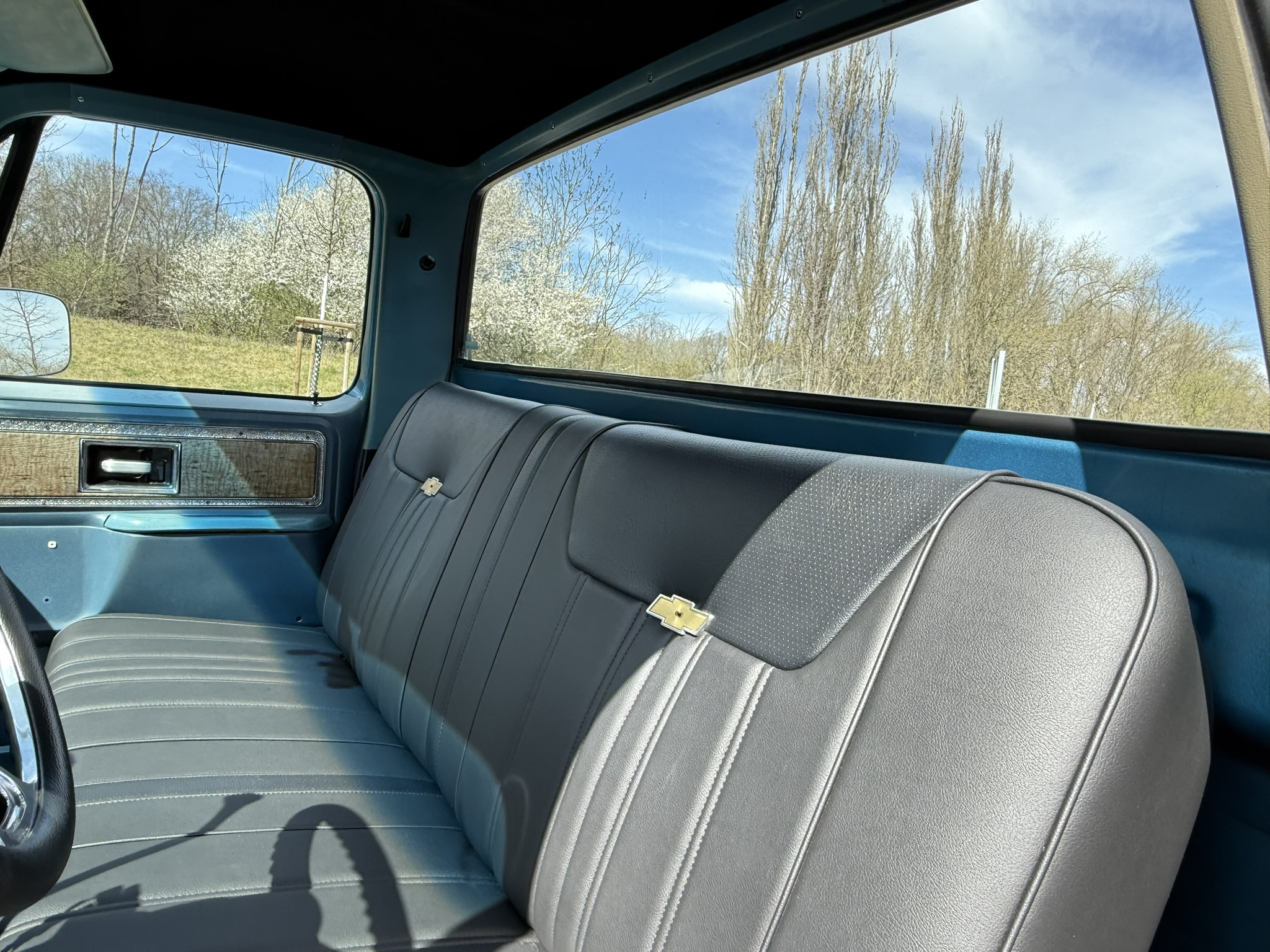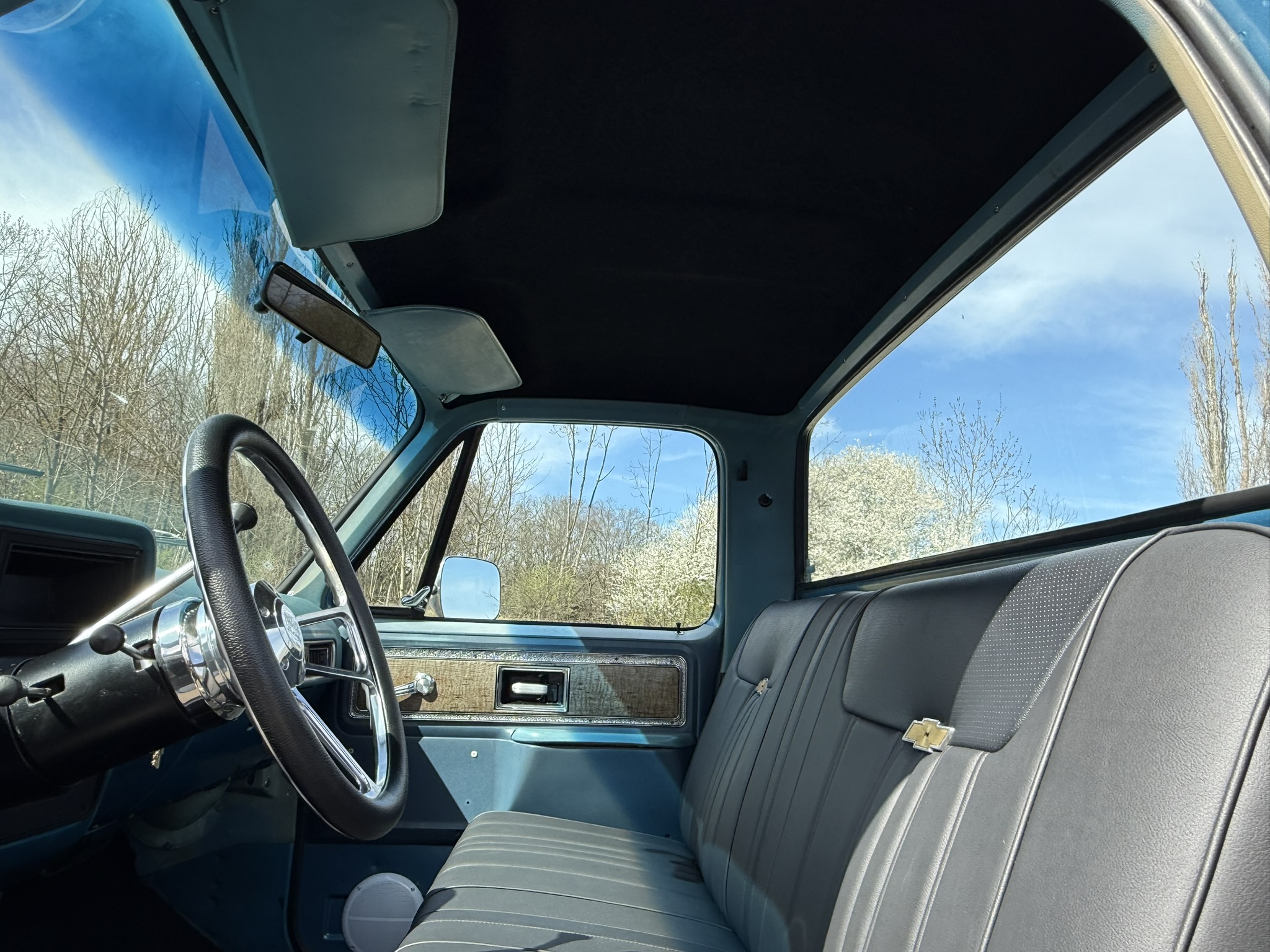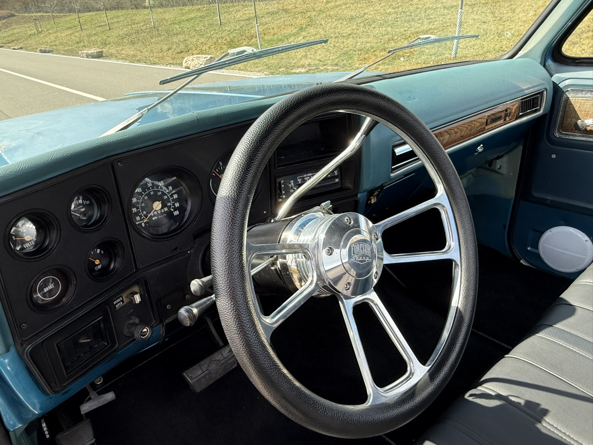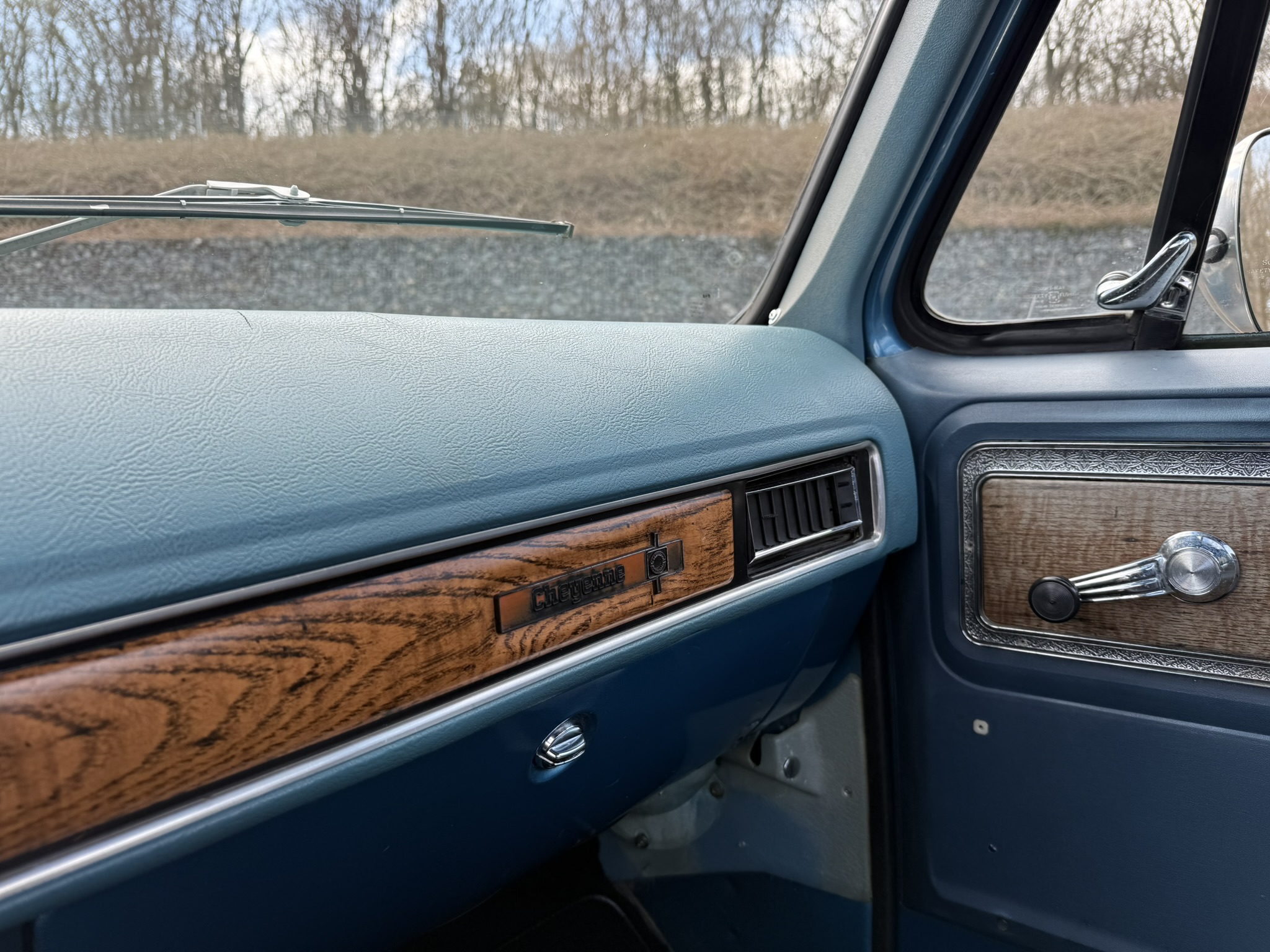 Die sogenannten Round Eyes Squarebody Pickups, so nennt man die erste Generation von 1973-1980, wegen ihrer runden Scheinwerfer, sind zweifellos am Beliebtesten. Dieses schöne Exemplar ist aus dem Jahre 1977 und kommt in der Ausstattungsvariante Cheyenne. Der Wagen hat deutsche Papiere inkl. Tüv und H. Motor ist ein 350V8 mit TH 350Getriebe. Servolenkung und Scheibenbremsen. Er wurde tiefergelegt und kommt auf Chrom Felgen mit Weisswandreifen. Das Fahrwerk ist knackig, aber noch komfortabel. Innen wurde er neu gepolstert mit Chevrolet Applikationen. Custom Grill. Der Lack ist im Used Look und wurde partiell angeschliffen. neue Chrom Stoßstangen vorne & hinten. Der Chevy kommt in der wendigen und gesuchtesten Shortbed Variante (kurze Ladefläche (2m)). Er fährt sich sehr schön und ist ein Hop in and Drive – Fahrzeug.
